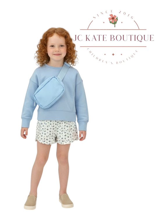 Girls Pullover, Woven Short, Fanny Bag Set in blue floral
