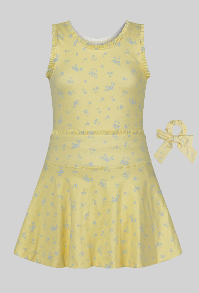 Girls Lux Lettuce Edge Tank, Skort, And Scrunchie Set in Yellow Floral