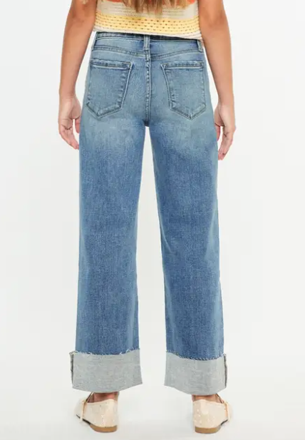 Youth high rise cropped wide leg jeans Medium wash