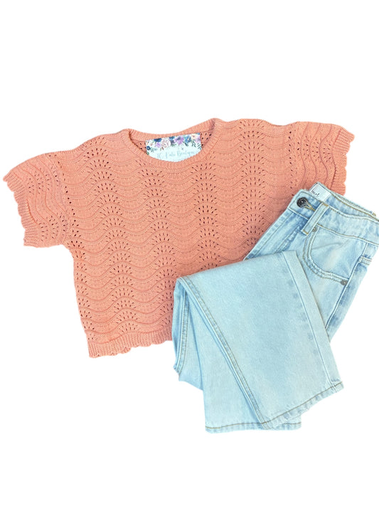 Girls Scallop Sleeve Knit T Shirt in Pink
