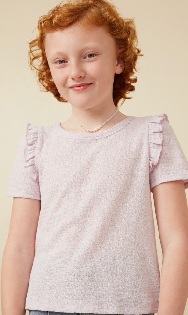 Girls Textured Ruffle Shoulder Knit Top in Lavender