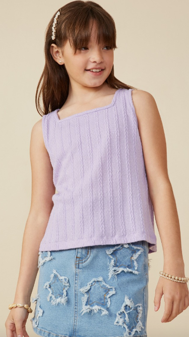 Girls Cable Textured Knit Tank in Lavender