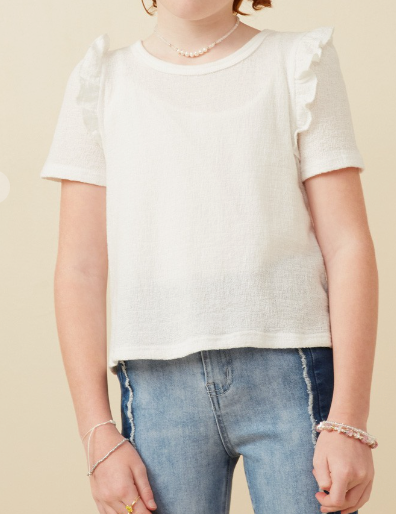 Girls Textured Ruffle Shoulder Knit Top in White