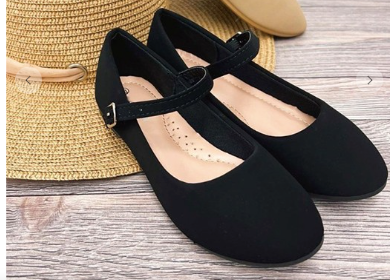 Girls Black Ballet Flat with Rhinestone Bow Detail