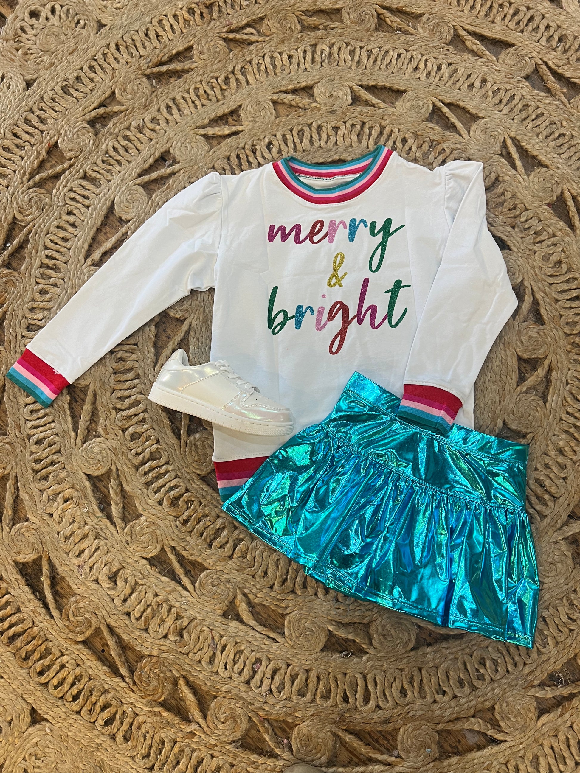 CHRISTMAS HOLLY GLITTER MERRY & BRIGHT SWEATSHIRT WHITE