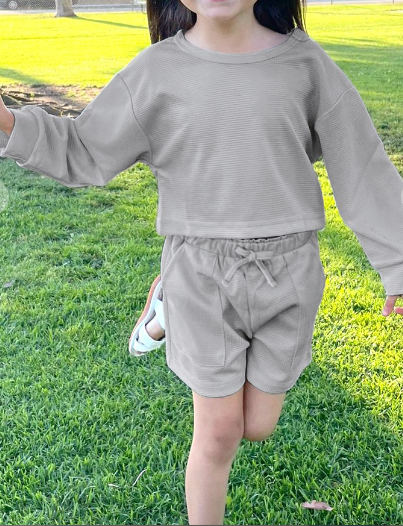 Girl's 2pc Short Set W/ Honey Comb Fabric &