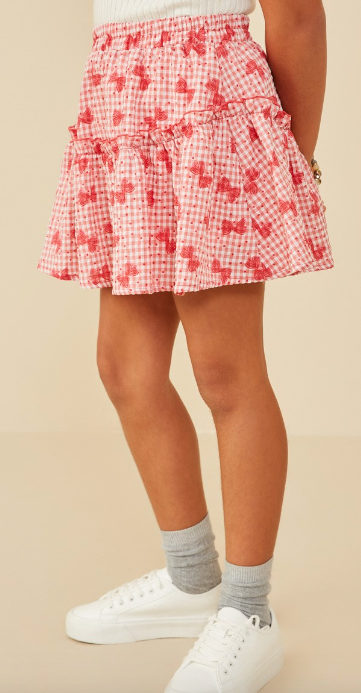 Girls Bow Print Seersucker Ruffled Skirt *Textured Bow Print Fabric *Elastic Waist *Ruffle Detail