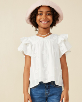 Girls Crochet Floral Detailed Ruffle Sleeve Top *Crochet Floral Fabric *Ruffle Sleeve *Top Lining