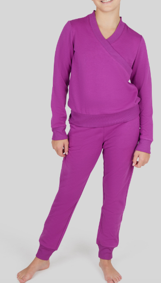 Girls Cross Over Pullover and Jogger in Purple Wine