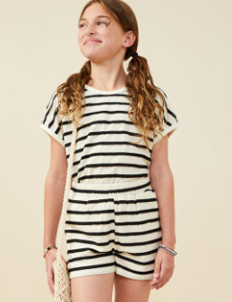 Girls Elastic Waist Ruffle Textured Strip Knit Shorts *Textured Stripe Fabric *Elastic Waist *Ruffle Detail