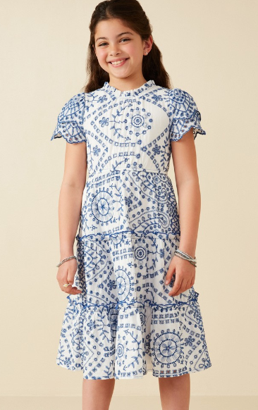 Girls Eyelet Lace Scallop Sleeve Midi Dress