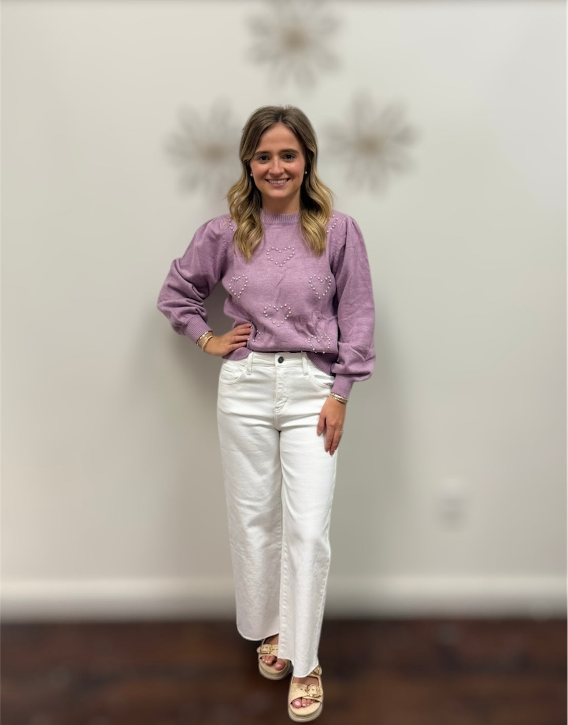 Girls Pearl Hearts Detail Pullover Sweater in Lavendeer