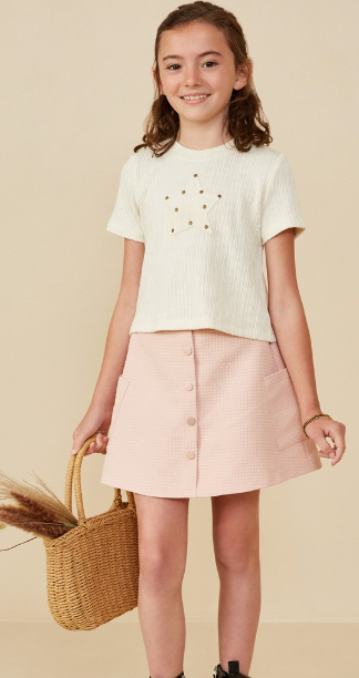 Girls Quilted Button Down Patch Pocket Skirt *Woven Fabric *Front Button Detail *Elastic Waist
