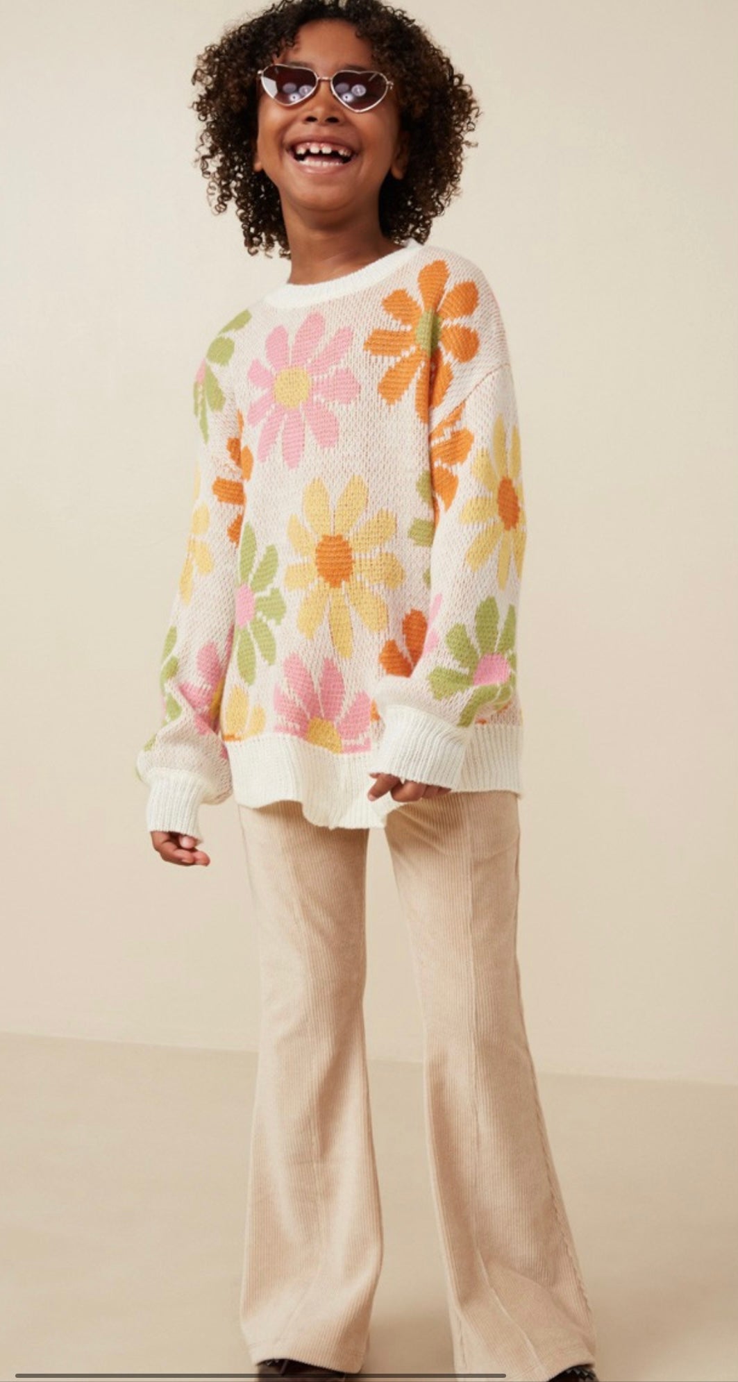 Girls Retro Daisy Knit Pullover Sweater *Knit Sweater *Long Sleeve *Pull On Silhouette