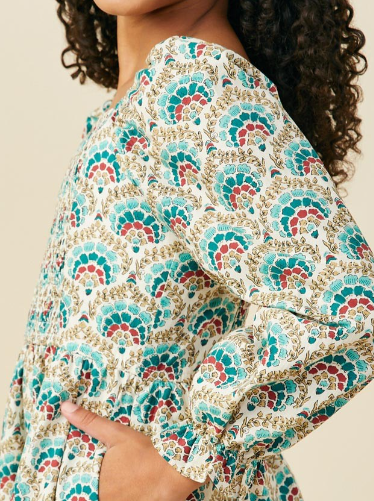 Girls Smithsonian Shin Budjitsukai Smocked Long Sleeve Dress *Shin Bijutsukai Print *Smocked Detail *Ruffle Sleeve