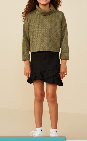 Girls Textured Knit Drop Shoulder Turtleneck Top *Textured Knit Fabric *Round Cut Neckline *Long Sleeve