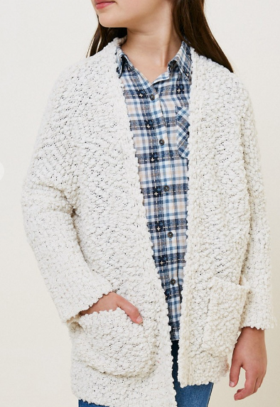 Girls Textured Open Front Sweater Cardigan *Textured Knit Fabric *Front Pockets *Dolman Sleeves