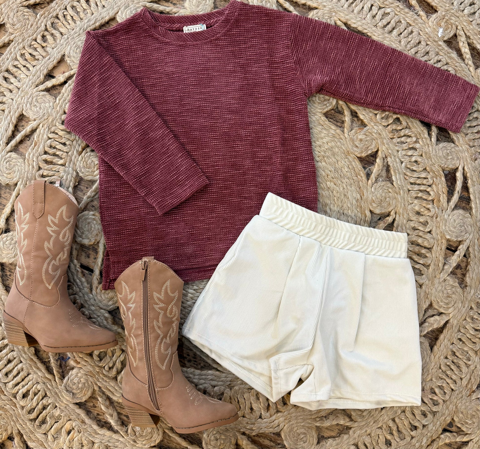 Girls Textured Waffle Chenille Long Sleeve Top *Textured Waffle Knit Fabric *Round Cut Neckline *Long Sleeve