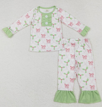 Green Bow Berry Bamboo Girls Christmas pajamas