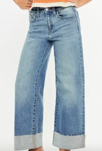 Youth open pack high rise crop wide leg jeans Medium stone wash